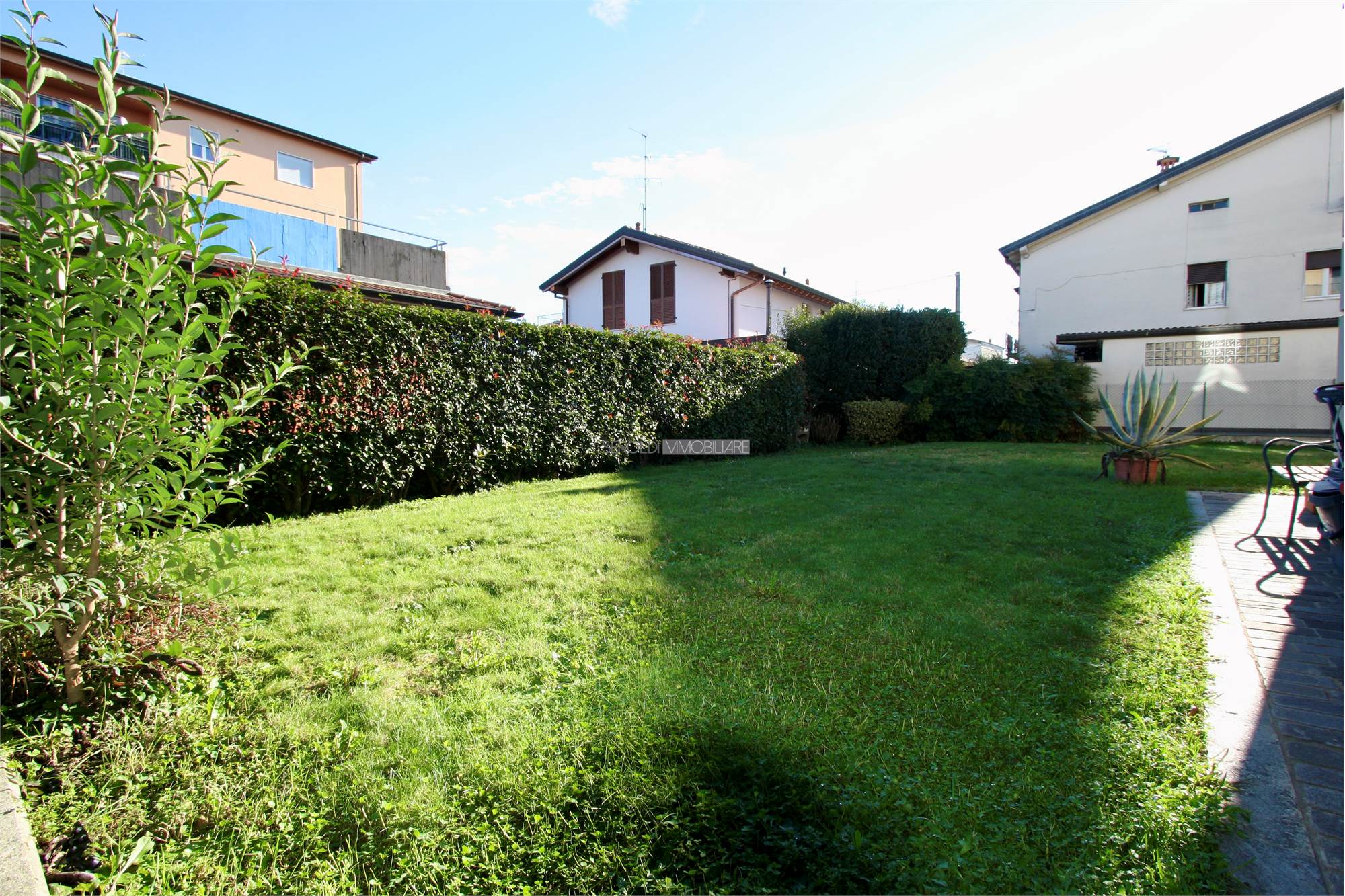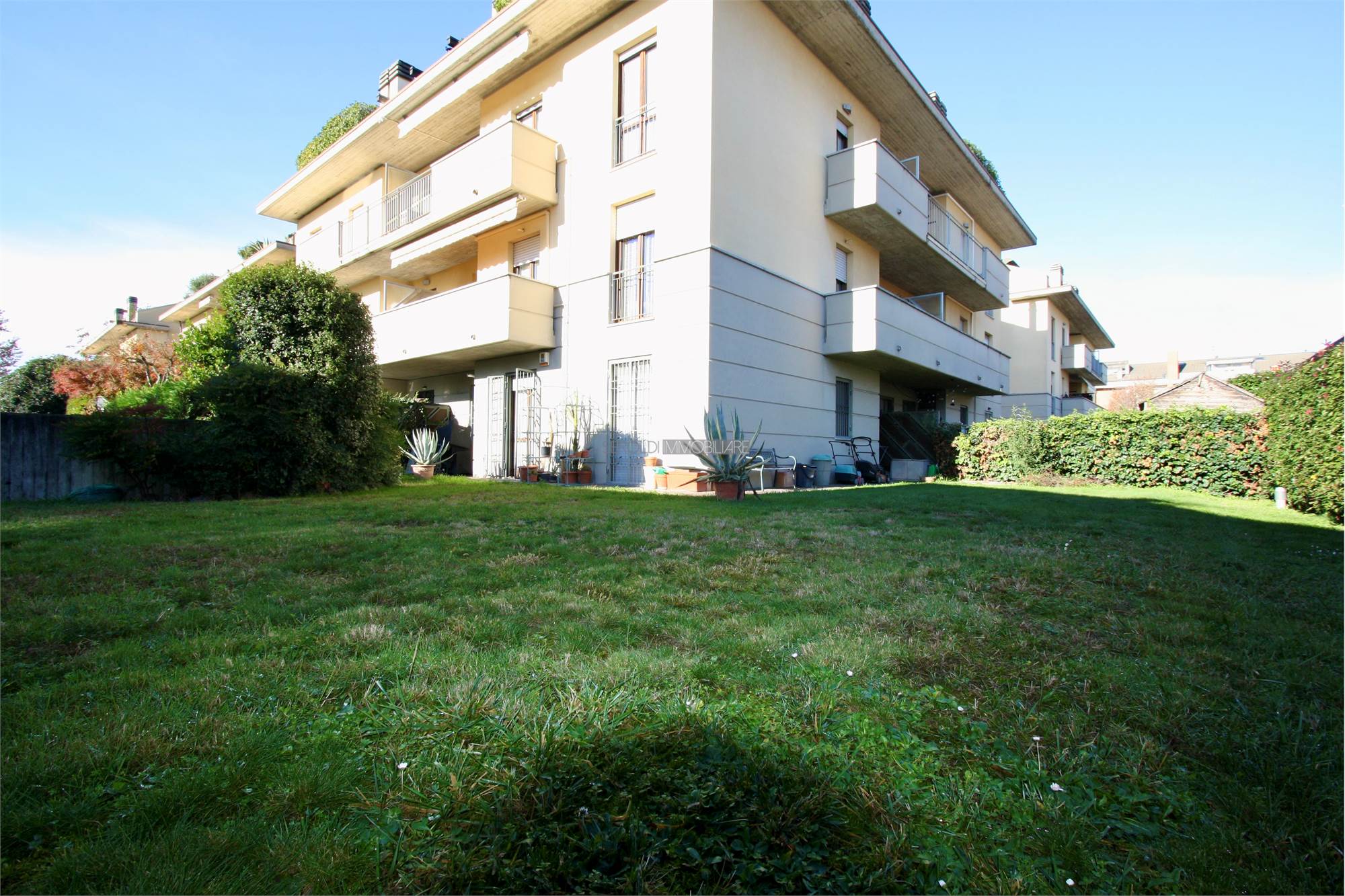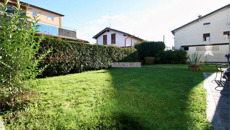 In zona residenziale servita proponiamo appartamento trilocale a piano terra in contesto condominiale. La soluzione è composta da soggiorno, cucina abitabile, disimpegno, doppi servizi e due camere. Inoltre è caratterizzata da un ampio giardino privato ideale per momenti di svago e relax all'aria aperta. Di pertinenza cantina ed il box singolo al piano interrato. L'appartamento dispone inoltre di impianto di allarme, zanzariere, inferriate anti intrusione, riscaldamento autonomo, pavimentazione in ceramica nella zona giorno e parquet nella zona notte.